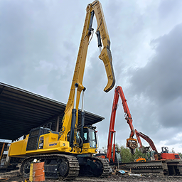 The PC850SE Pile Driving Arm is a super heavy-duty vibro hammer boom designed for the Komatsu PC850SE (80–85 ton class) excavator.