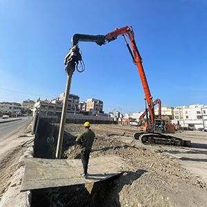 Cette perche est idéale pour opérations de battage de pieux de longue durée où une force verticale constante et des vibrations contrôlées sont requises, notamment Installation de palplanches, construction de fondations de ponts, renforcement des berges et des plateformes offshore, et projets de battage de pieux solaires.