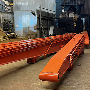 Notre flèche et notre bras sont constitués d'une structure caissonnée soudée de grande taille et de plaques épaisses ou multicouches pour les zones à fortes contraintes.
